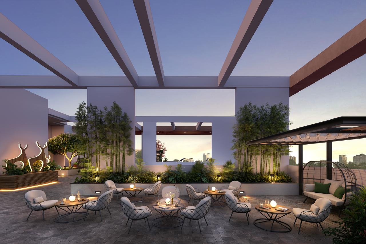The project includes various amenities focused on fitness and recreation. Planned facilities include landscaped gardens, fitness center, swimming pool, and children's play areas. These amenities are designed to enhance the living experience for residents.